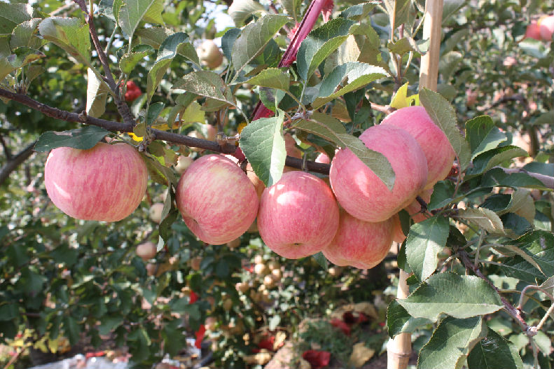 沂源红”诞生在沂源,是沂源独特生态环境的造化,也是沂源苹果新品种培育的硕果。 “沂源红”具有短枝、条红、高桩、全红、个大、色艳、肉脆、皮薄、味浓、耐贮、开张、易管、丰产、稳产、质优、价高、好卖等特点。